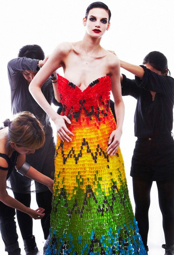 Módní magazín Twelv přišel s originálním nápadem jak představit své první číslo. Designéři pro ně vytvořili z gumových medvídků kopii šatů od britského designéra Alexandra McQueena.