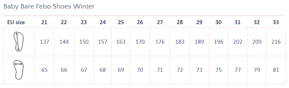 Optimální nadměrek u zimních bot je 1,2-1,3 cm. Doporučení k měření nohy a výběru vhodné velikosti: www.littleshoes.cz/blog/jak-merit-jakou-vzit/