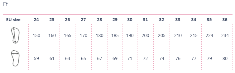 V tabulce uvádíme vždy vnitřní rozměr boty. Tabulku připravujeme na základě vlastního měření nástroji Plus 12 ( vnitřní délka) a Clevermess (vnitřní šířka).