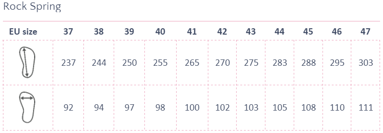 V tabulce uvádíme vždy vnitřní rozměr boty. Tabulku připravujeme na základě vlastního měření nástroji Plus 12 (vnitřní délka) a Clevermess (vnitřní šířka).